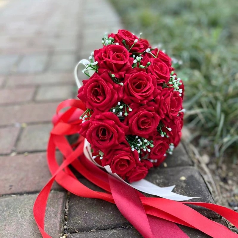 韩式仿真手捧花新娘结婚绸缎永生花红玫瑰花摄影婚礼手捧花束高档