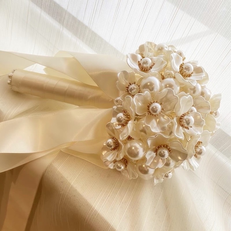 手捧花新娘结婚diy材料包出嫁婚礼珍珠水钻高级感送闺蜜礼物成品
